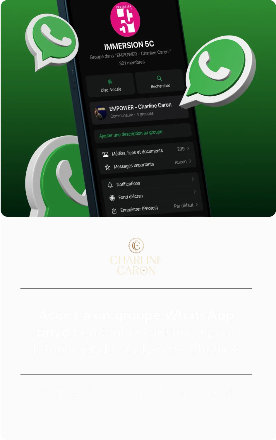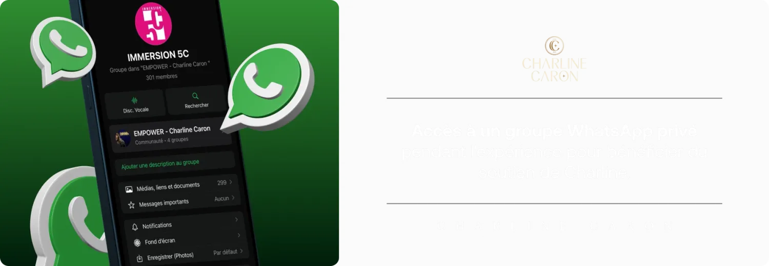 Afin de garantir la qualité des échanges et que pour que Charline puisse vous répondre dans la communauté whatsapp,
